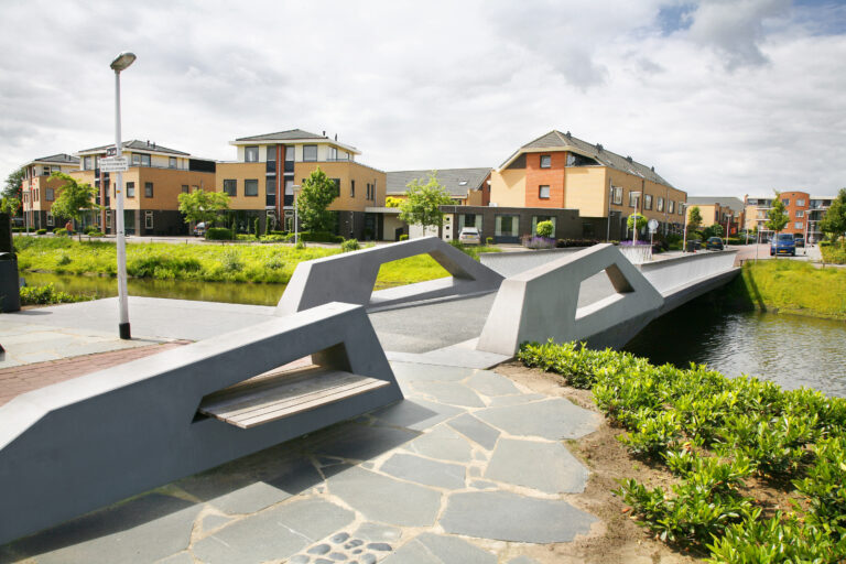 Nieuwbouw 3 wijkbruggen te Voorthuizen. Beton uitgevoerd in CUR-100 schoon beton.